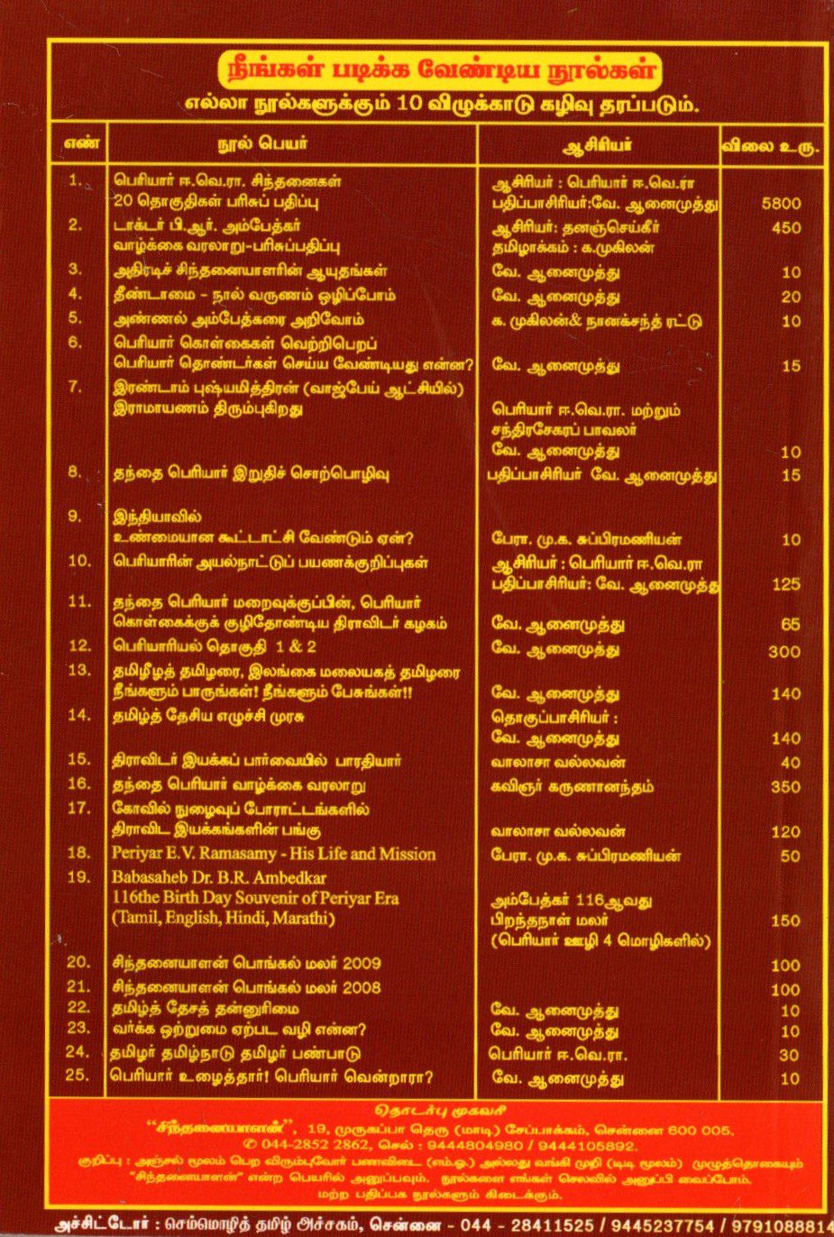 | Publisher | Periyar E Ve Ramasamy Nagammai Kalvi Aaraaichi Arakkattalai |